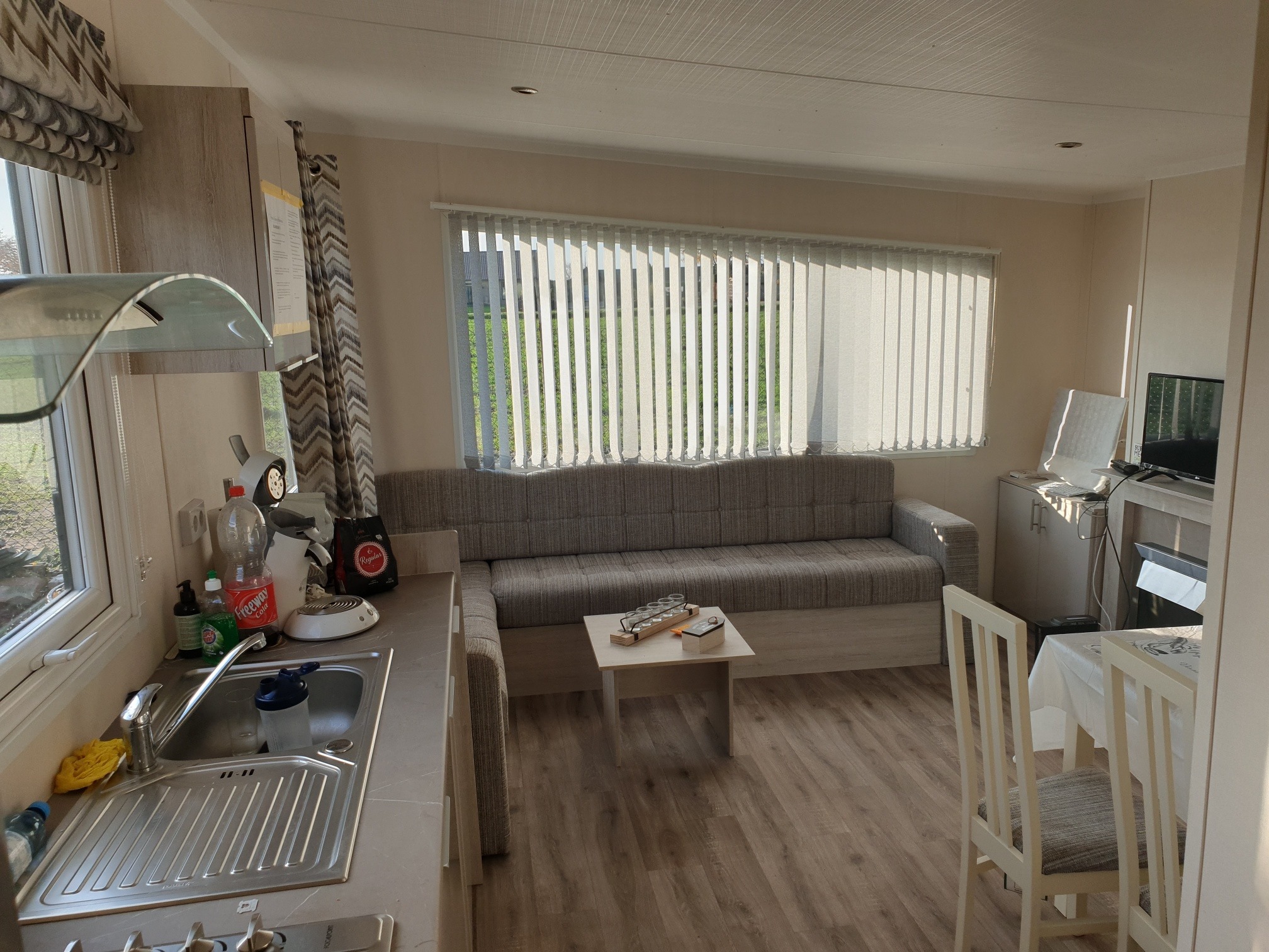 Op een prachtige plek met mooi uitzicht, staat een bijna volledig nieuw chalet met woonkamer, 2 slaapkamers, badkamer, apart toilet en voorzien van alle comfort van thuis. Het staat direct op het kavel naast chalet 1, op een zeer rustige plek op het park. Door de aanwezige airco die zowel kan verkoelen als verwarmen, is het chalet  ook in de winter zeer comfortabel om in te wonen. Naast het chalet is tevens een berghok beschikbaar. Dit chalet is volledig ingericht en een genot om in te verblijven en is geschikt tot 4 personen.