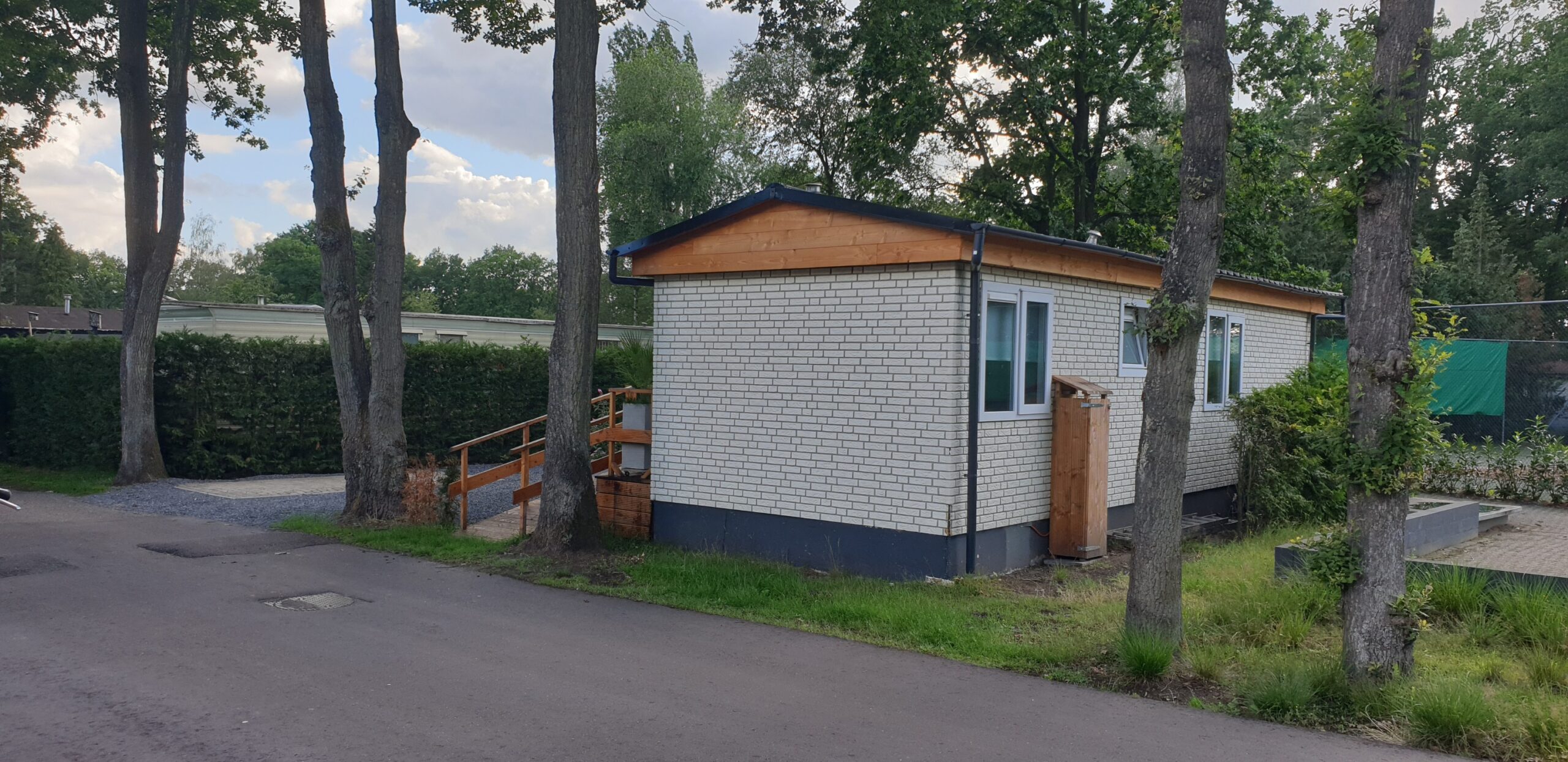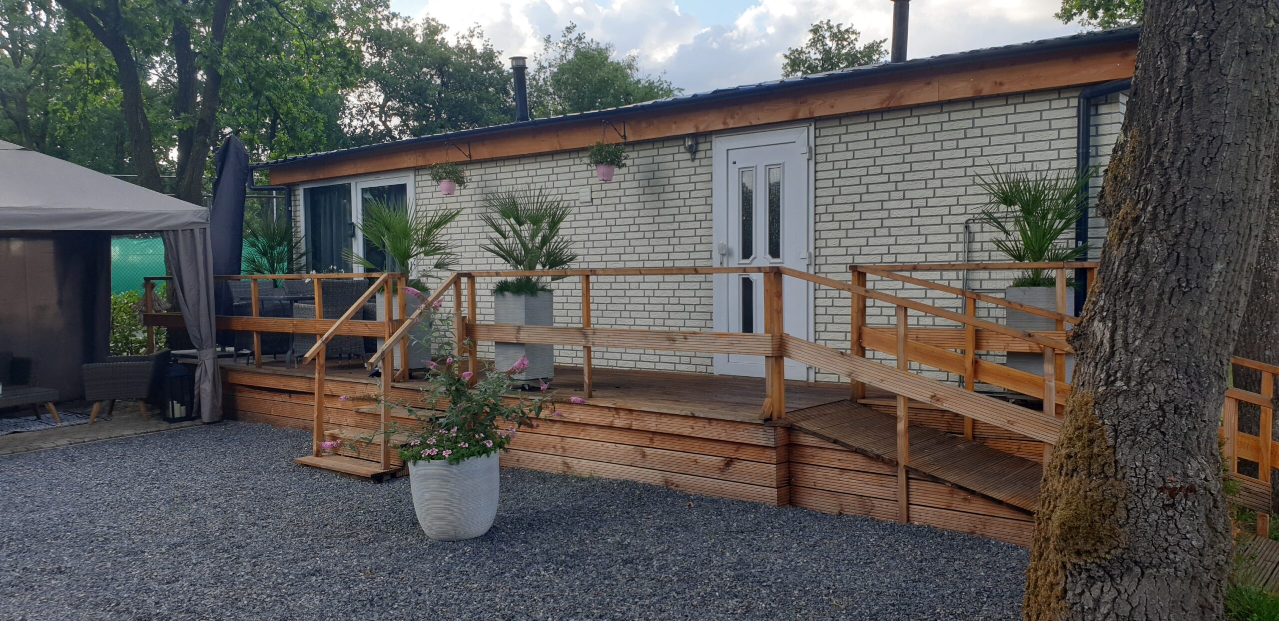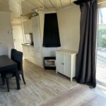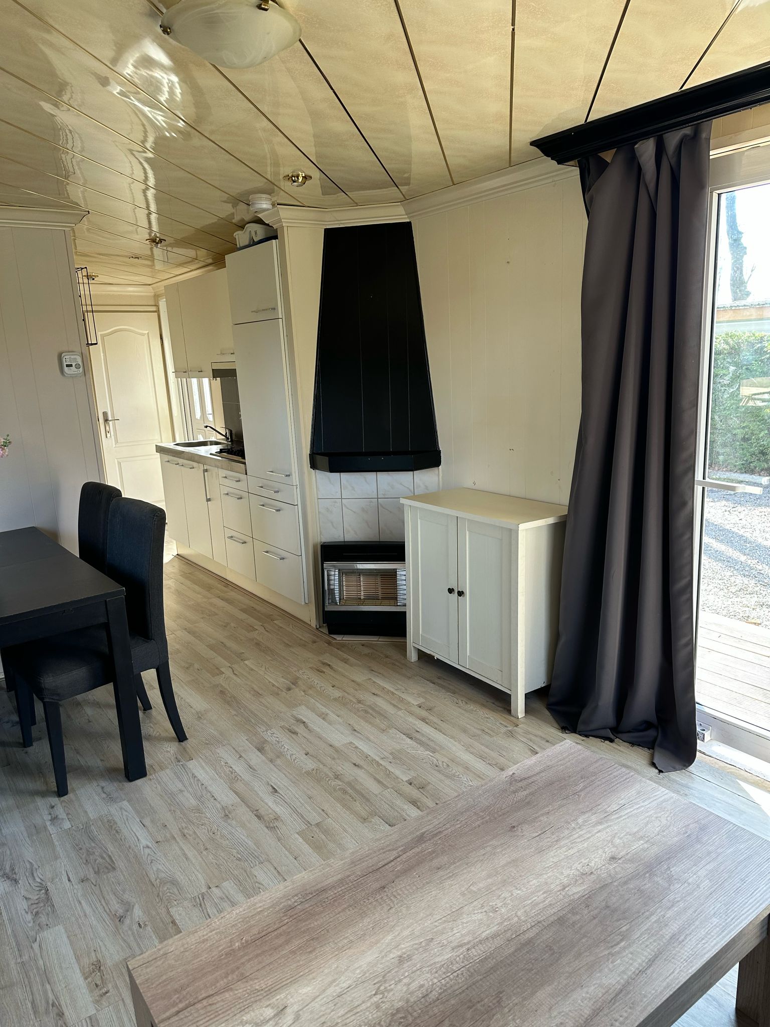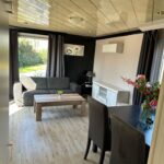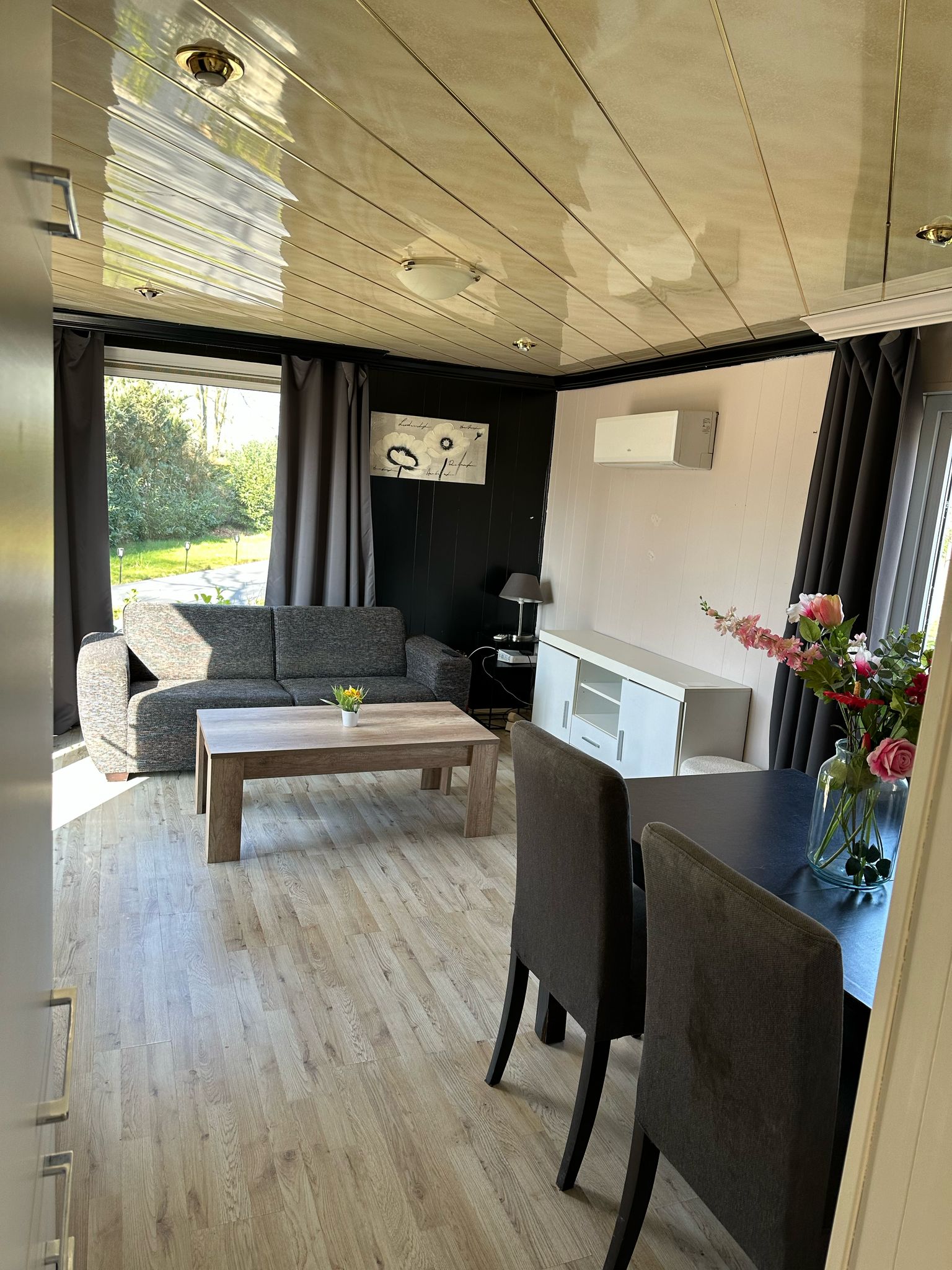 Dit chalet is bij uitstek geschikt voor alleenstaanden en stellen. Het beschikt over een woonkamer met keuken, een zeer ruime badkamer met bad en één slaapkamer. Door de aanwezige airco die zowel kan verkoelen als verwarmen, is het chalet ook in de winter zeer comfortabel om in te wonen. Dit chalet is volledig ingericht met een complete inventaris. Het chalet staat vooraan op de camping, waardoor alle voorzieningen binnen handbereik zijn. Het zwembad, het restaurant en de receptie bevinden zich allemaal binnen een straal van 50 meter.