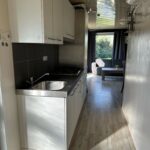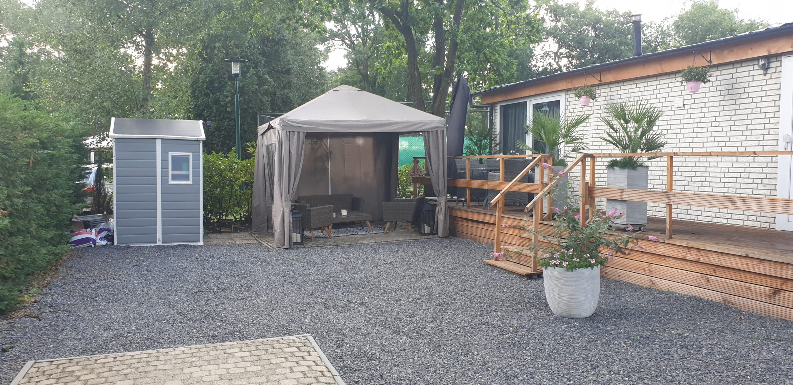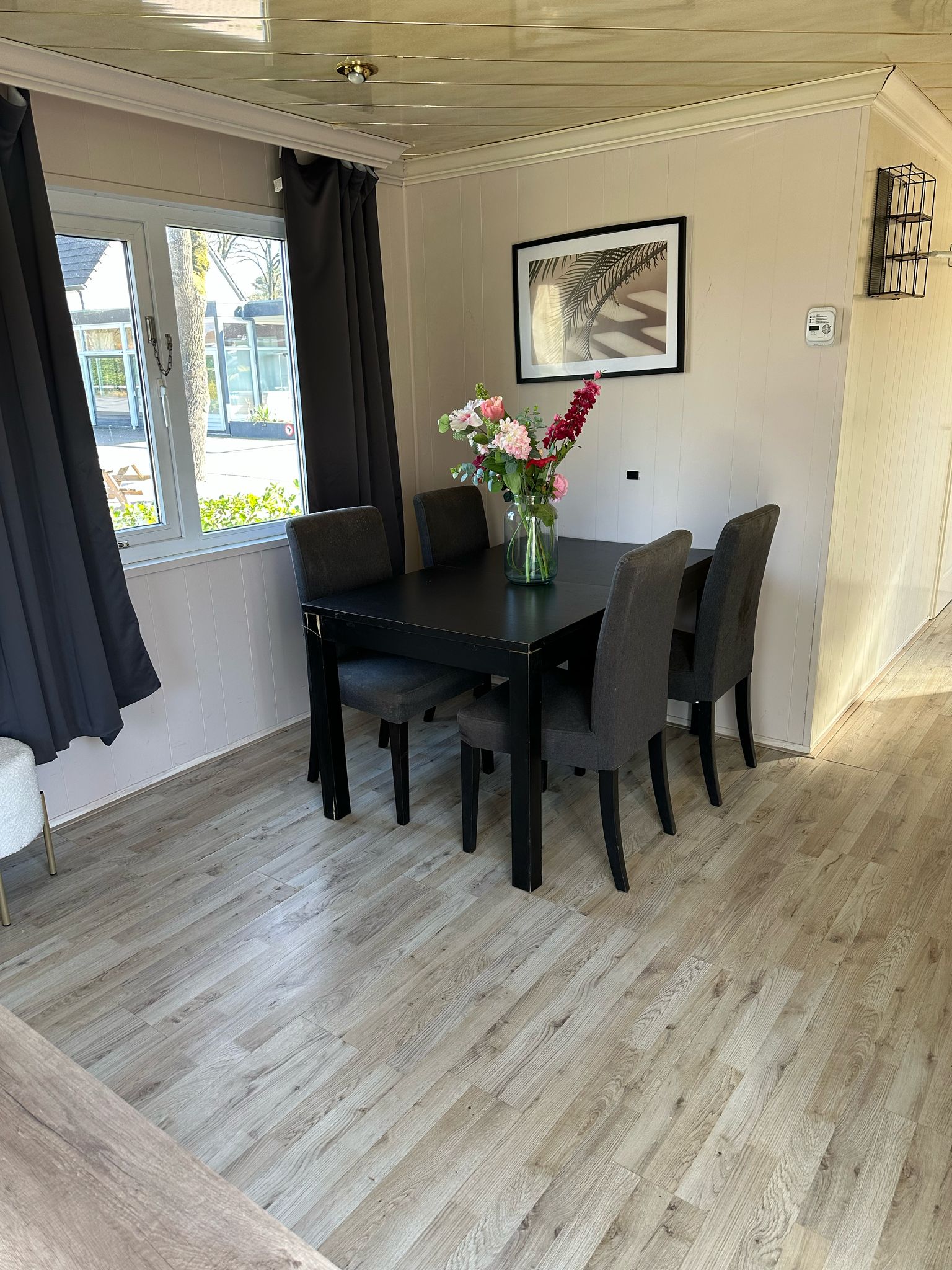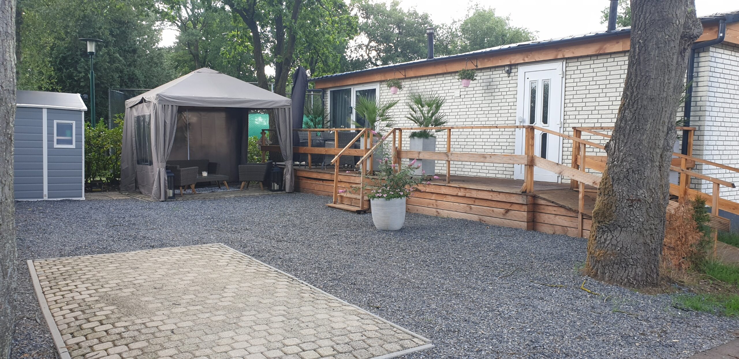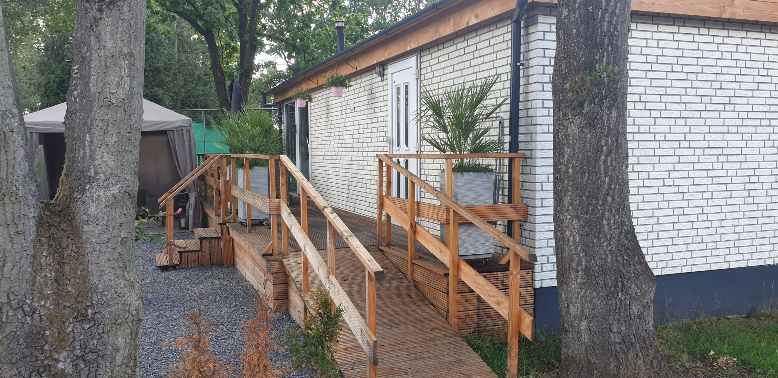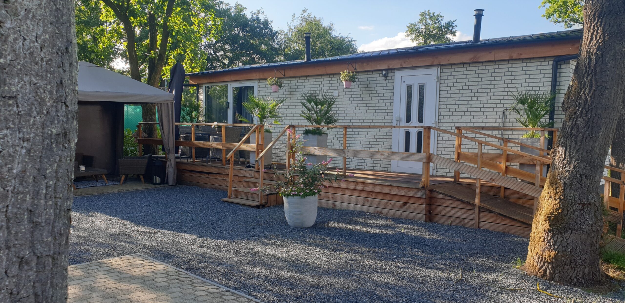 Dit chalet is bij uitstek geschikt voor alleenstaanden en stellen. Het beschikt over een woonkamer met keuken, een zeer ruime badkamer met bad en één slaapkamer. Door de aanwezige airco die zowel kan verkoelen als verwarmen, is het chalet ook in de winter zeer comfortabel om in te wonen. Dit chalet is volledig ingericht met een complete inventaris. Het chalet staat vooraan op de camping, waardoor alle voorzieningen binnen handbereik zijn. Het zwembad, het restaurant en de receptie bevinden zich allemaal binnen een straal van 50 meter.